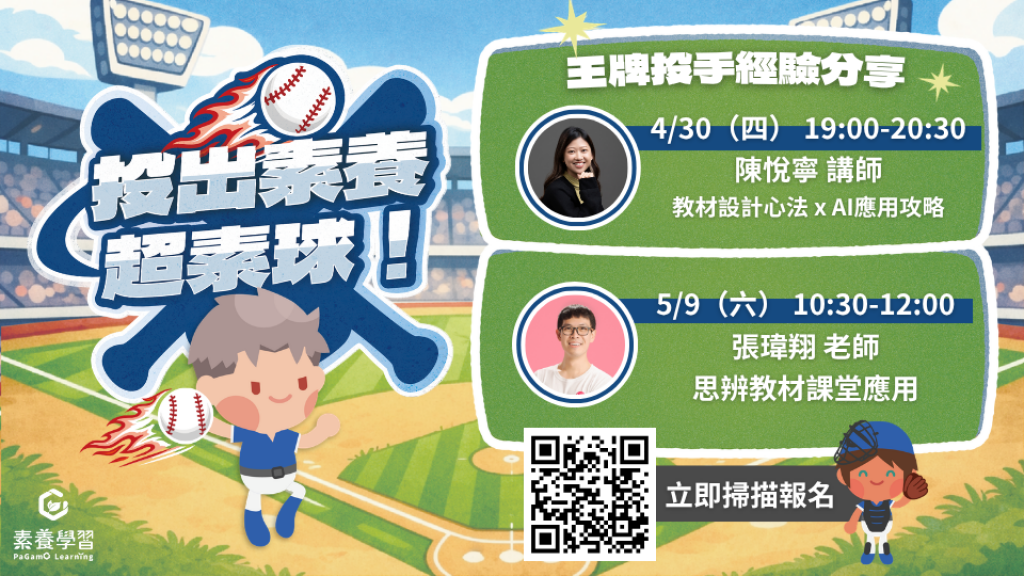 PaGamO 素養學習團隊辦理「投出素養超素球!王牌投手教學經驗大公開!」線上研習,請教師踴躍報名參加。